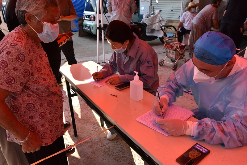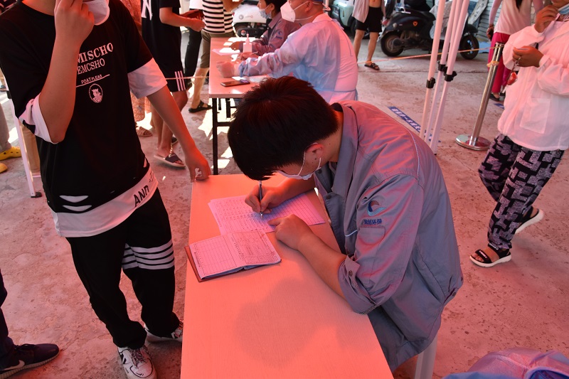 我司人员抵达现场时发现,核酸检测人员众多,人员登记需手写填报,导致核酸检测工作整体缓慢,我司慰问人员随即化身防疫志愿者,投身到协助人员登记工作中去,极大提高了现场核酸检测速度,一线防控人员及核酸检测的居民纷纷为我司员工的奉献精神点赞。